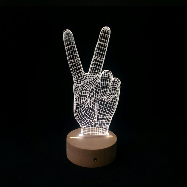 BOSHI Battery powered V hand white lights beech wood 3D illusion Night Light for sleeping