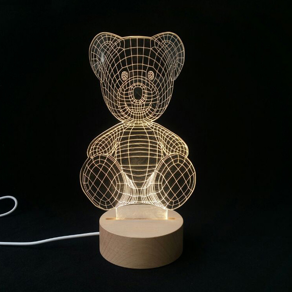 BOSHI Romote controller brightnees white light 3D Bear round wood led night light desk decorative lamp