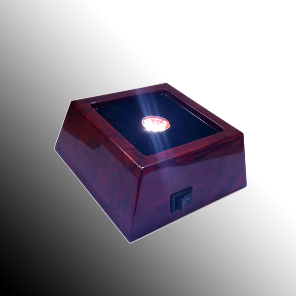 3.5" x 3.5" x 1" Premium cherry lacquer finish square wooden led light display stand for crystals